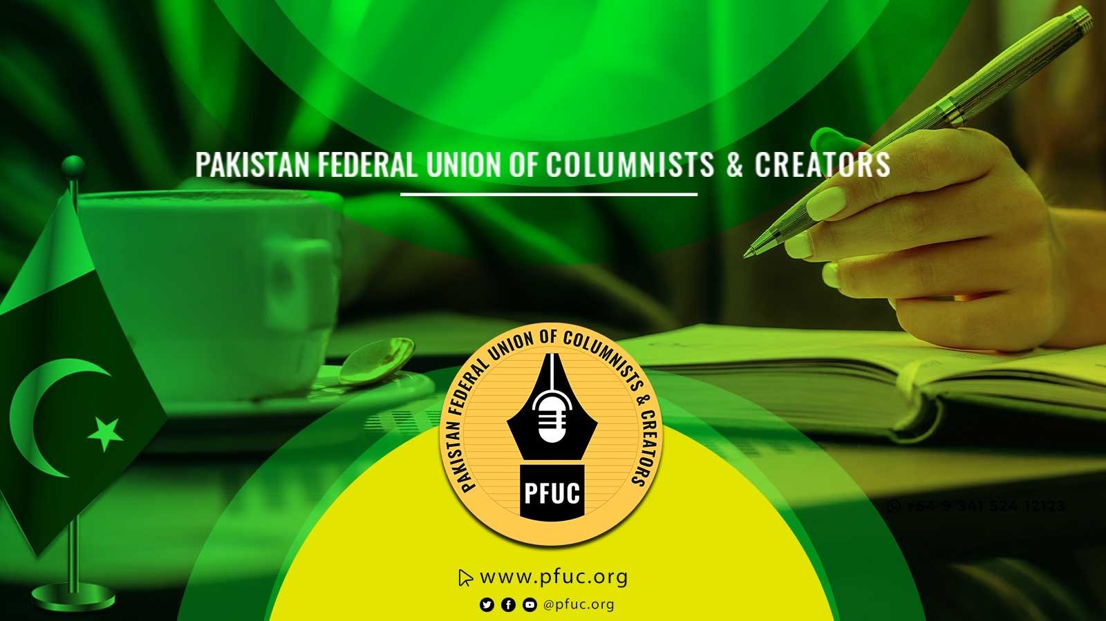 Pakistan Federal Union of Columnists & Creators (PFUC) is Pakistan’s first nationwide union dedicated to representing and uniting columnists and content creators across print, electronic, and digital media platforms. The union serves as a collective voice for media professionals, working to promote ethical journalism, freedom of expression, and professional excellence. PFUC aims to strengthen the media landscape by fostering collaboration, protecting the rights and interests of its members, encouraging responsible content creation, and upholding high standards of integrity, accuracy, and accountability in journalism. Through advocacy, training, and engagement, PFUC strives to empower media professionals and contribute to an informed, democratic, and progressive society.